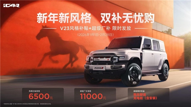 此次iCAR重磅推出的新年购车福利三重大礼,包括“风格补贴+超级厂补+赠送充电桩”权益,让用户从买车到用车都省钱省心。